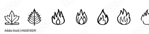 Simple black line art icons of leaves and flames