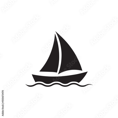 Simple black silhouette of a sailboat on water. Sailboat Icon Set – Black and White Nautical Symbols with Waves for Marine and Travel Designs