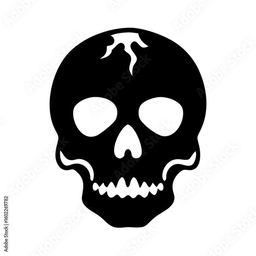 skull, silhouette, black, white, halloween, death, skittish, horror, bone, skeleton, head, fractured, simple, flat, design, vector, illustration, symbol, icon, pirate, danger, warning, dead, bone, anatomy, medicals, skull, face, teeth, jaw, graphic