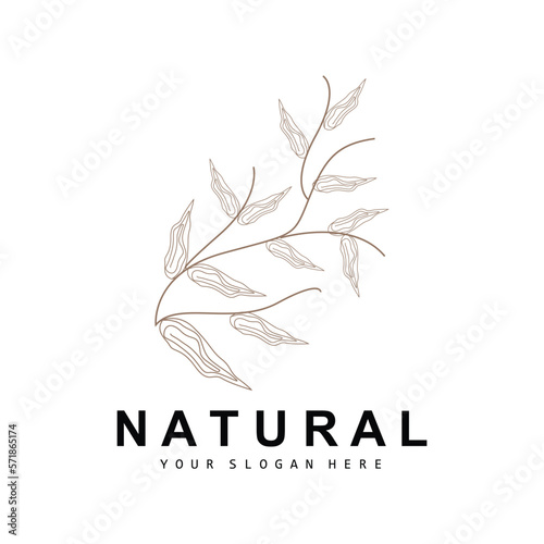 Simple Botanical Leaf and Flower Logo, Vector Natural Line Style, Decoration Design, Banner, Flyer, Wedding Invitation, and Product Branding