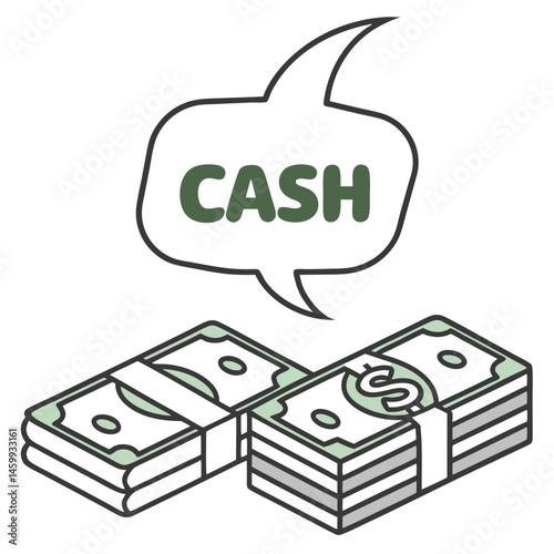Simple Cash Emoji with Stacked Dollar Bills in Vector Style