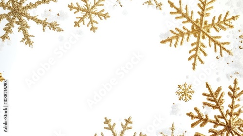 Simple Christmas border featuring gold snowflakes on transparent background with text-friendly copy space.