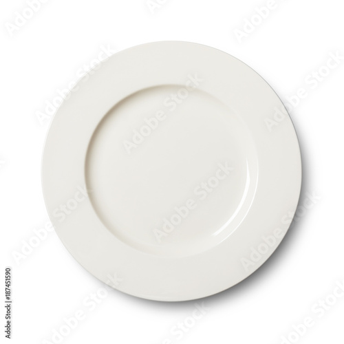 Simple circular porcelain plate isolated on whit with clipping path