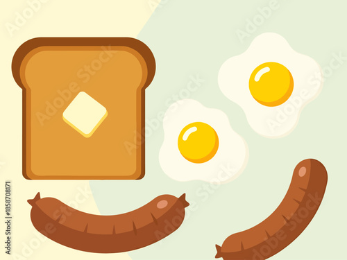 Simple Flat Design Breakfast Meal Toast Eggs and Sausages