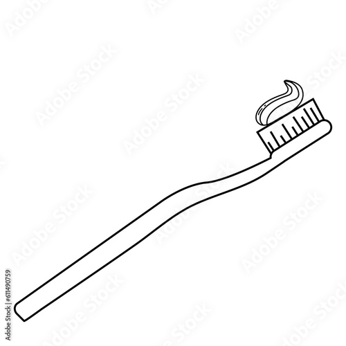 simple flat toothbrush with tree color toothpaste mouth hygiene dantist black line