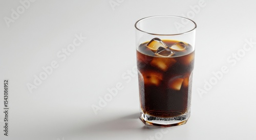 Simple Glass of Cold Black Iced Coffee with Ice Cubes on a Clean White Background with Copy Space