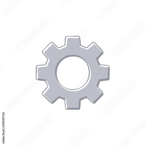 Simple gray cogwheel clip art; machine mechanism icon with outline for engineering concepts and automation