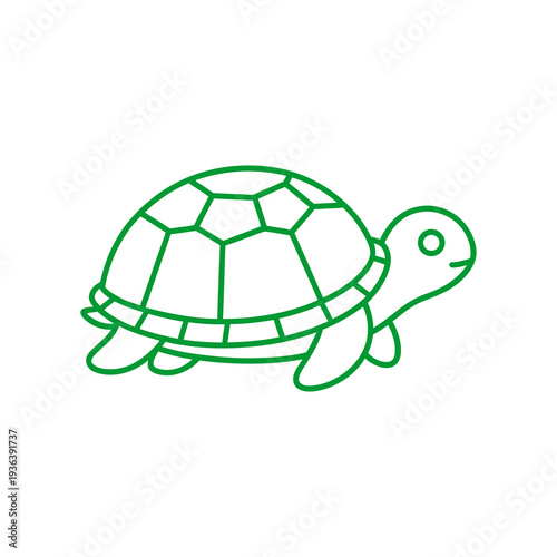 Simple green line drawing of a turtle on white background.
