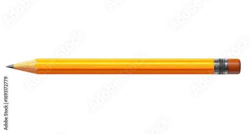 Simple, horizontal, graphic depiction of a yellow pencil