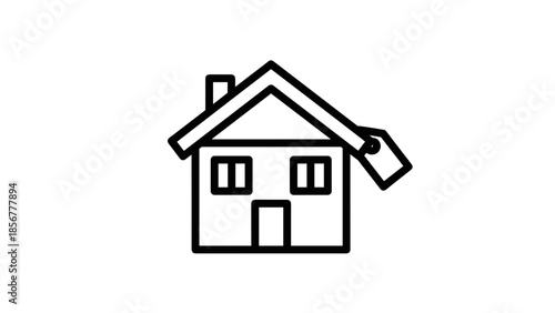 house, home, icon, tags, price, real, estate, sale, property, symbol, simple, line, art, minimalist, black, white