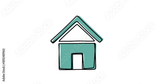 Simple house icon with teal outline and fill, minimalist vector illustration
