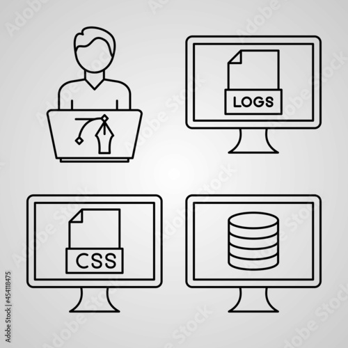 decorator, designer, programmer, software, working, document, file, folder, log, programming, datum, database, storage, computer, icon, collection, set, group, signs, symbol, vector, line, outline, icon