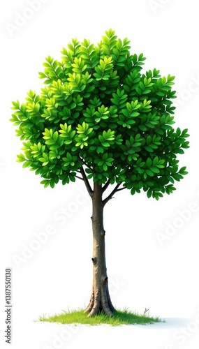 Simple isolated tree on white background, focusing on trunk and leaves, tree, organic