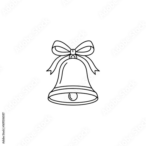 bell, bow, ribbon, outline, line art, drawing, illustration, graphic, design, symbol, icon, shape, ornament, decoration, festive, celebration, holiday, christmas, new year, wedding, event, chime, ring, sound, alert, announcement, call, service, church, school, alarm, notification, vintage, retro, simple, elegant, classic, monochrome, black, white, isolated, element, vector, art, clip art, graphic design, decorative, gift, present