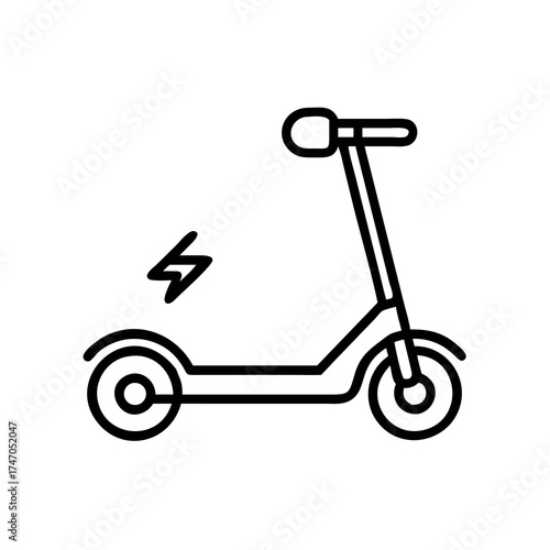 scooter, icon, line art, drawing, illustration, transportation, vehicle, mobility, energy, power, lightning bolt, symbol, clean energy, environmentally friendly, modern, city, urban, commute, travel, outline, simple, minimalist, graphic, design, white background, black-and-white, digital artwork, vector, concept, technology, innovation