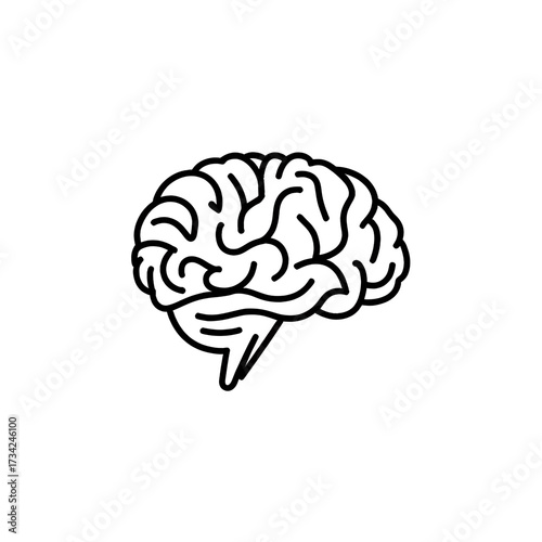 brain, human, anatomy, medicals, science, mind, intelligence, cognition, thought, idea, learning, memory, neurology, psychology, concept, symbol, illustration, drawing, outline, line, art, minimalist, icon, vector, black, and, white, isolated, background, creativity, cognition, thinking, brainstorming, consciousness, mental, health, organic, cerebra, cerebellum, lobe, neural, network, digital, graphic, design