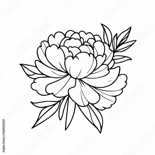 Simple Line Drawing of a Peony for Tattoo Design