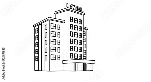Simple line drawing of a tall hotel building with rectangular design