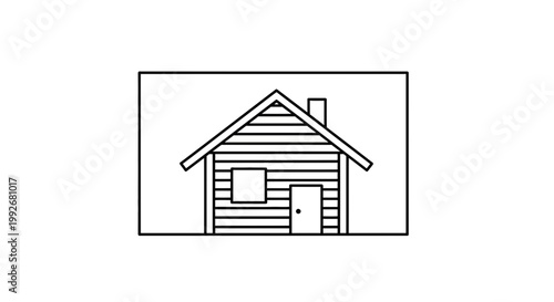 Simple Line Drawing of a Wooden House with Chimney and Window