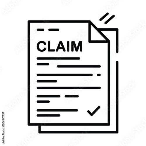 Simple line icon of a claim form document with checkmark icon