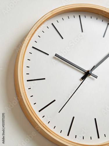 Simple Minimalist Wall Clock with Wooden Frame and Clean Design on White Background