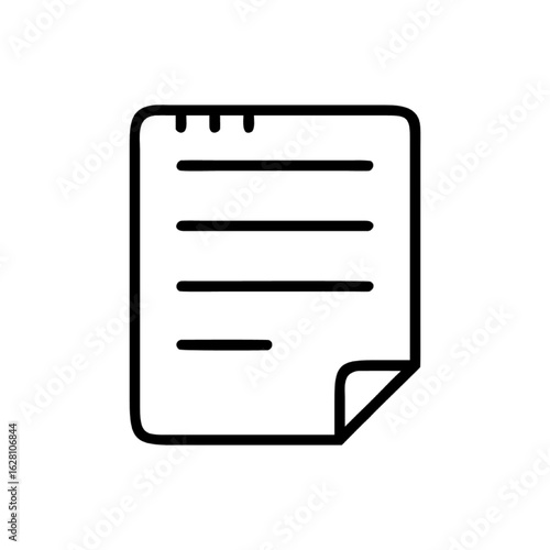 Simple Note Icon: A minimalist design featuring a flat, outlined style of a paper note, clean lines conveying a message of clear organization and documentation.