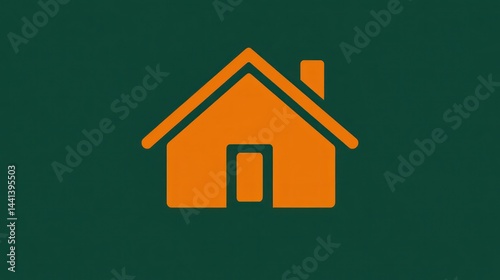 Simple orange house icon on dark green background. Possible use web design, app interface