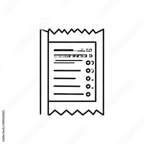 receipt, document, paper, outline, simple, graphic, black, white, line, box, circle, datum, information, list, item, price, cost, payment, transaction, store, purchase, detail, icon, illustration, vector, drawing, style, minimalist, modern, design