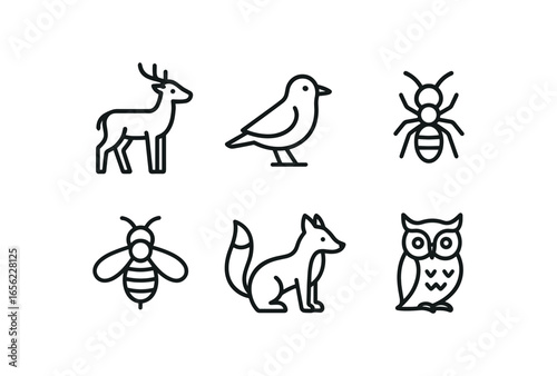 simple outline stroke icon items monoline icons style isolated on white background forest (wildlife): deer bird bee fox owl