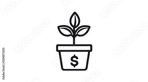 Simple plant in pot with dollar sign, growth concept, for use in business or finance presentations