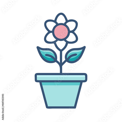 flower, pot, potted plants, vector, illustration, icon, garden, gardening, nature, spring, summer, growth, bloom, blossom, plant, leaf, stem, botanical, floral, decorative, element, design, graphic, simple, isolated, background, beauty, cute, flora, springtime, freshness, indoor, minimal, season, turquoise, pink, outline