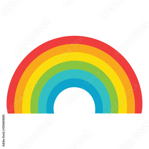 Simple Rainbow Illustration Featuring Seven Vibrant Colors in a Semicircular Shape on White