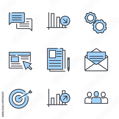 Simple Set of Business icon template color editable. Business Communication, Team Structure, Management Finance and more symbol vector sign isolated on white background for graphic and web design.