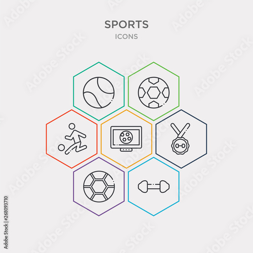 sport, icon, vector, infographic, hexagon, weight, gym, ball, soccer, football, sport, fitness, medal, lifting, wrestling, television, grooved, live, media, player, american, game, team, circular, circle, ball, silver, rugby, signs, symbol, set, green, orange, blue, red, filled, simple, purple, info, graphic