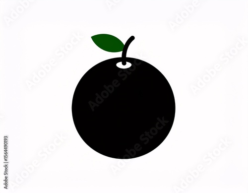 Simple Silhouette Illustration of a Juicy Orange Fruit with a Single Leaf