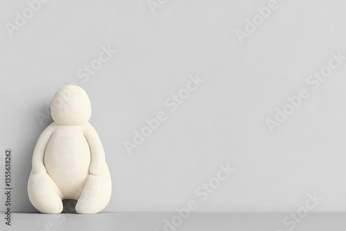 figurine, doll, white, soft, simple, sitting, small, cute, hand-made, decorative, unique, charming, whimsical, craft, children, baby, toddler, home, decoration, display, room, pastel, neutral, minimalist, modern, design, gift, present, art, sculpture, ceramic, cotton, wool, plush, fabric, textile, posed, isolated, background, grey, interior, decor, collection, souvenir, toy, figure, character, adorable