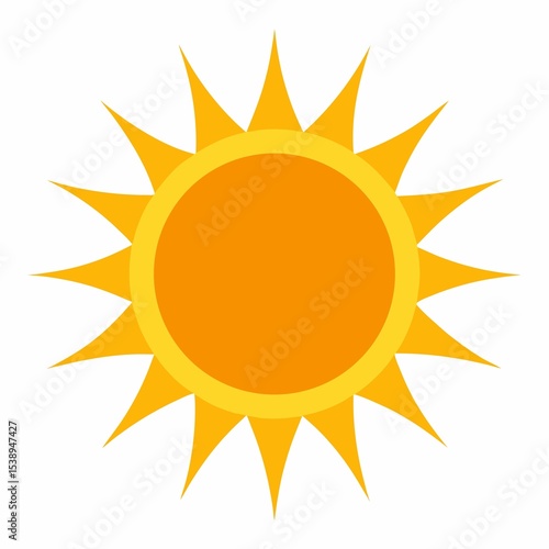 sun, icon, summer, weather, symbol, clip art, illustration, graphic, design, element, yellow, orange, bright, shiny, hot, energy, sunshine, day, isolated, white, background, simple, cartoon, flat, minimal, vector, logotype, template
