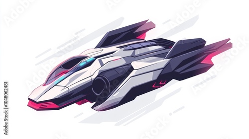 Simple vector design of a futuristic spaceship, with smooth gradients and sharp geometric lines, placed on a clean white background, precise and clean aesthetics