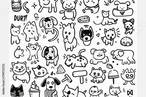 Simple wallpaper of dogs and cats. Vector linear seamless pattern. For postcard covers, etc