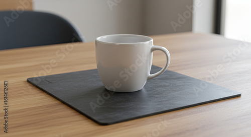 Simple White Coffee Mug on a Dark Gray Placemat Minimalist Style.