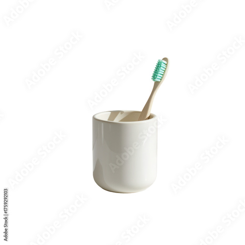 Simple White Toothbrush Holder with Bamboo Toothbrush Inside
