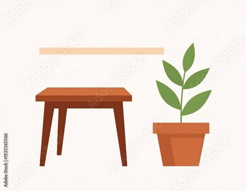 wooden, table, plant, pot, shelf, brown, terracotta, green, leaf, minimalist, interior, design, home, decor, furniture, simple, modern, beige, living, room, office, element, empty, light, basic, flat