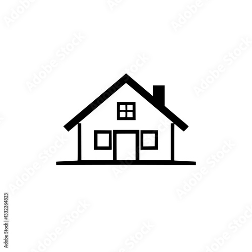 vector, house, home, building, icon, residence, property, real estate, black, white, simple, minimalist, line art, graphic, design, illustration, roof, chimney, window, door, facades, architecture, isolated, bungalow