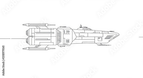 Simplified Stylized Illustration of a Sci-Fi Spaceship