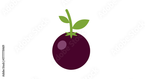 Simplistic Illustration Of A Dark Purple Fruit With Green Leaves Depicted Digitally