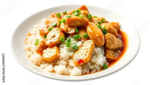 Singapore steam chicken rice isolated on a white background