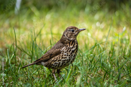 bird, nature, animal, wildlife, beak, game, grass, brown, feather, green, thrush, young, avian, song, black, wing, small, searching