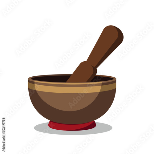 bowl, mallet, meditation, relaxation, mindfulness, well-being, healing, spiritual, zen, yoga, therapy, instrument, sound, vibration, illustration, vector, graphic