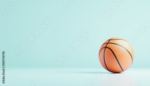 Single basketball on a light blue background, copy space.