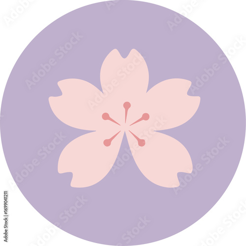 Single cherry blossom with soft pink petals on a gradient purple background